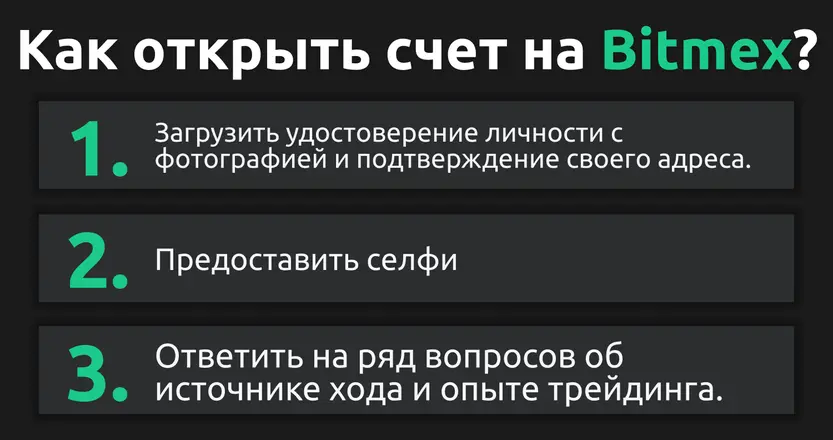 C сентября 2020 года биржа BitMEX ввела обязательную регистрацию. Если пользователь хочет начать торговлю на BitMEX и получать прибыль, ему необходимо пройти верификацию.