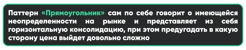 Паттерн «Прямоугольник» сам по себе говорит о имеющейся неопределенности на рынке и представляет из себя горизонтальную консолидацию, при этом предугадать, в какую сторону цена выйдет довольно сложно, да и делать это большого смысла нет, можно просто дождаться пробоя одной из сторон и торговать в эту сторону.