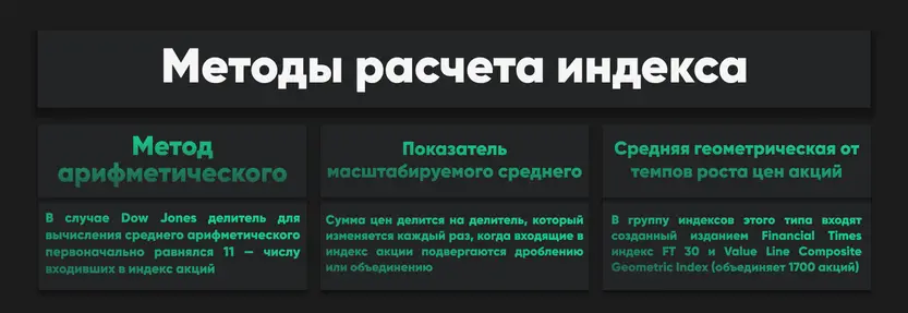 Каждый фондовый индекс призван решить конкретную задачу. Эти инструменты классифицируются по различным признакам — по методу расчета (взвешивание компонент), семействам и даже по автору.
