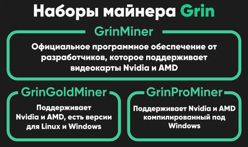 Для майнинга криптовалюты Grin понадобятся видеокарта и программа-майнер. Стандартный набор майнера Grin состоит из GrinMiner – официального программного обеспечения от разработчиков, которое поддерживает видеокарты Nvidia и AMD. Есть также версии для Linux и MacOS. Комиссия равна 0%.