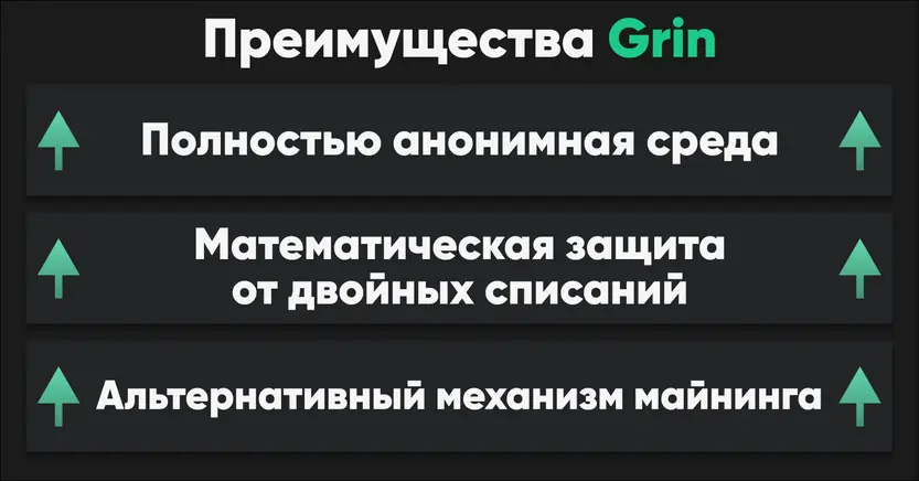 Один из дополнительных плюсов Grin — математическая защита от двойных списаний. Основная цель протокола MimbleWimble, реализованного в Grin, – создать математическое доказательство того, что сумма всех транзакций в сети всегда равна нулю. И это не только мешает отслеживать перемещения средств, но и делает невозможным двойное списание. Потому что в этом случае баланс будет ненулевым.