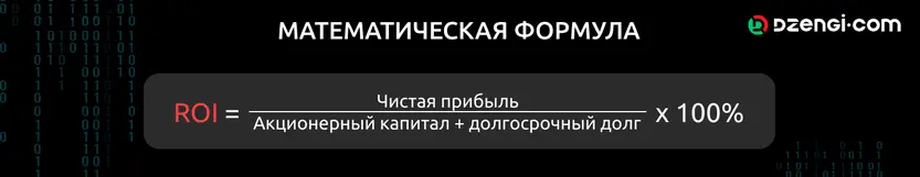 ROI (коэффициент рентабельности постоянного капитала) показывает эффективность предприятия в использовании инвестированного капитала (этот показатель также измеряется в процентах). Его высчитывают по следующей формуле: