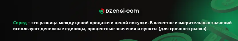 Спред – это разница между ценой продажи и ценой покупки. В качестве измерительных значений используют денежные единицы, процентные значения и пункты (для срочного рынка).