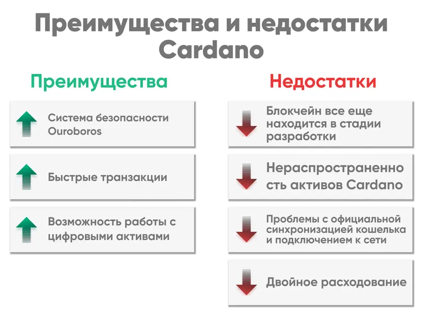 Определенный минус Cardano — блокчейн все еще находится в стадии разработки. Он должен решить свои проблемы масштабируемости, так как способен обрабатывать лишь 257 транзакций в секунду (TPS).