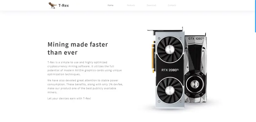 T-Rex Miner — современный высокопроизводительный майнер, оптимизированный специально для видеокарт NVIDIA. Активно развивается и быстро адаптируется под новые алгоритмы и монеты.