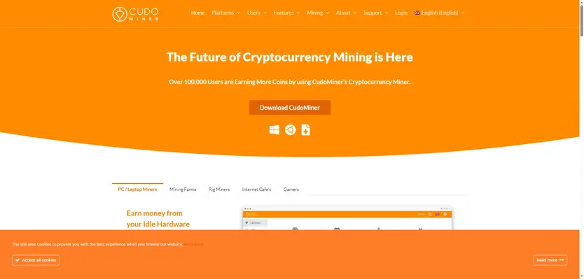 - Скачать программу для майнинга можно с официального сайта (доступны версии для Windows, Linux, Android)