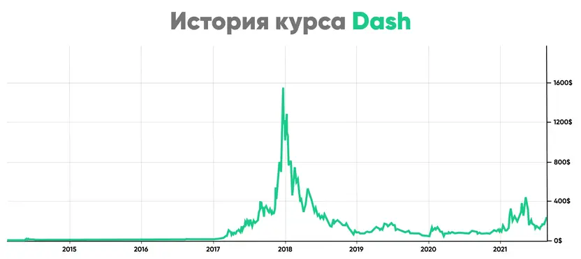 В 2021 г., следуя тенденциям рынка, криптовалюта Dash выросла в цене. Первый пик был достигнут 19 февраля на отметке $320,84.